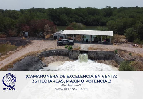 Camaronera en venta con 36 hectáreas y 5 lagunas. Equipada con 2 estaciones de bomba, energía eléctrica y solar, oficina, bodega, dormitorios,